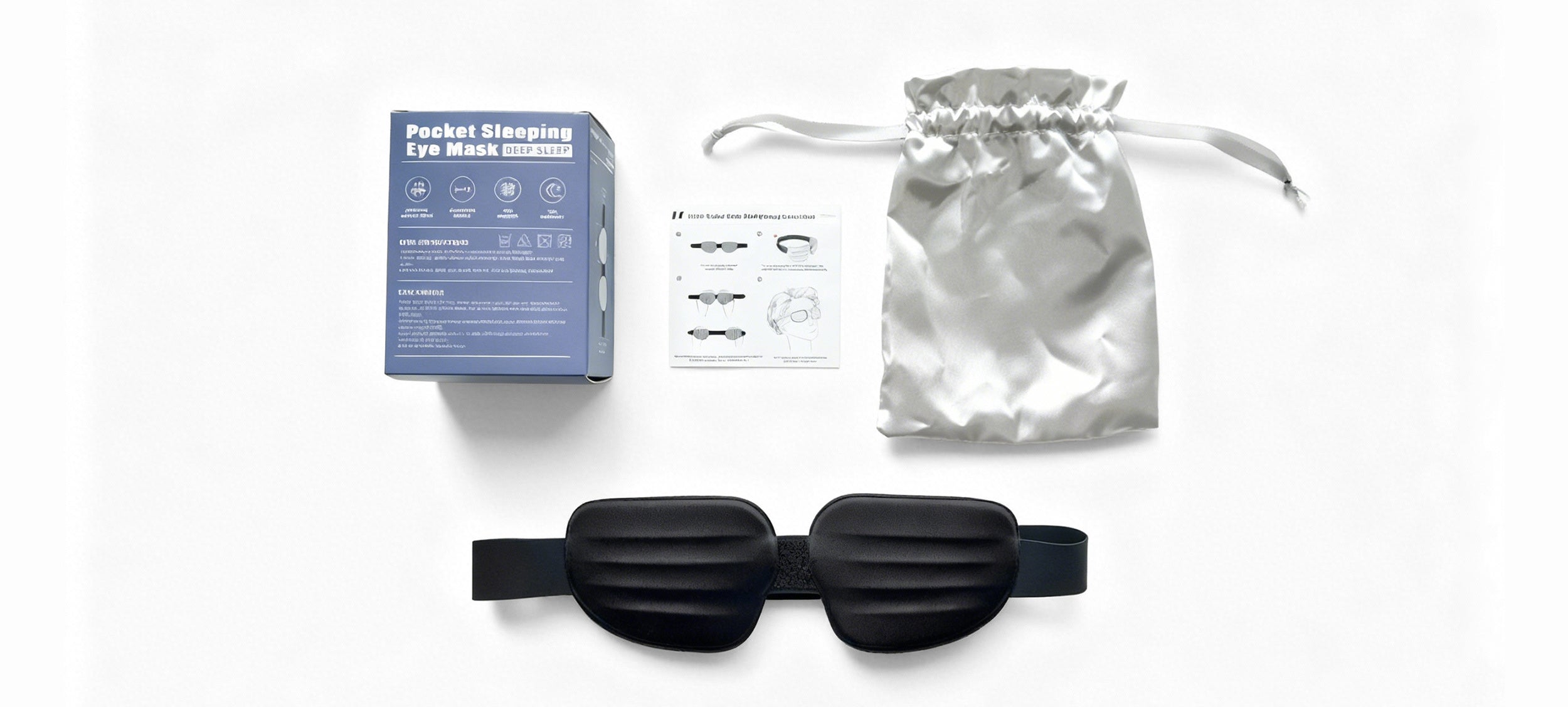 Includes: 1 x Pocket Sleep Mask,, 1 x Travel Pouch,1 x user manual.