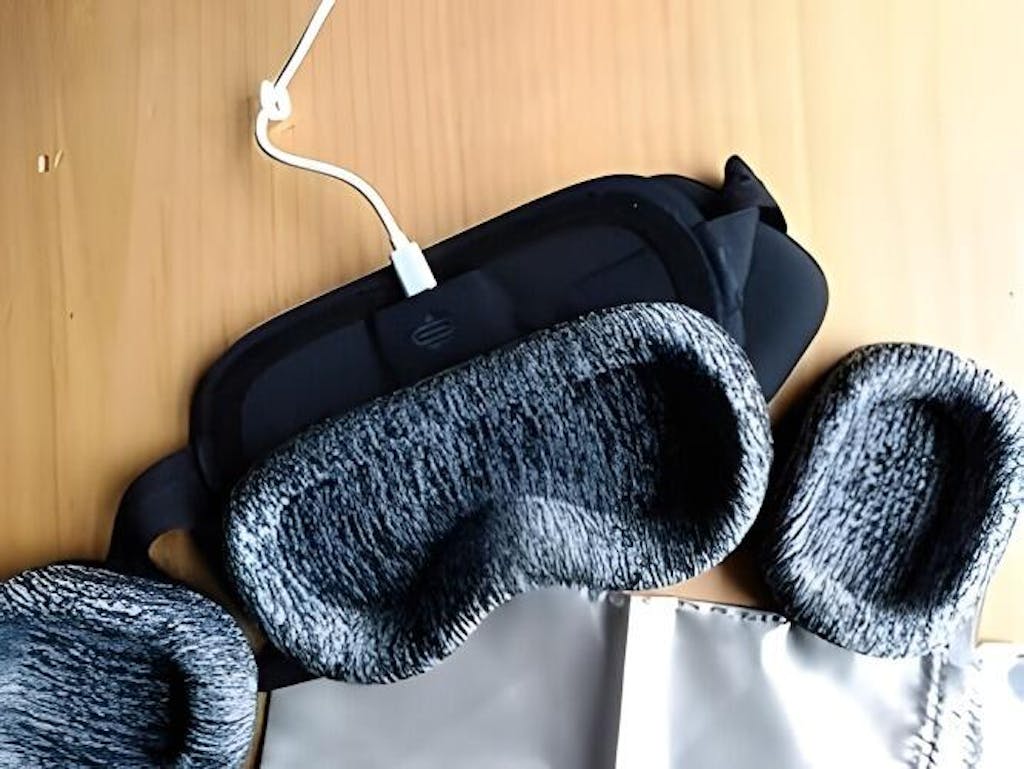 A sleep mask with headphones that blocks light and reduces noise for a deeper sleep.